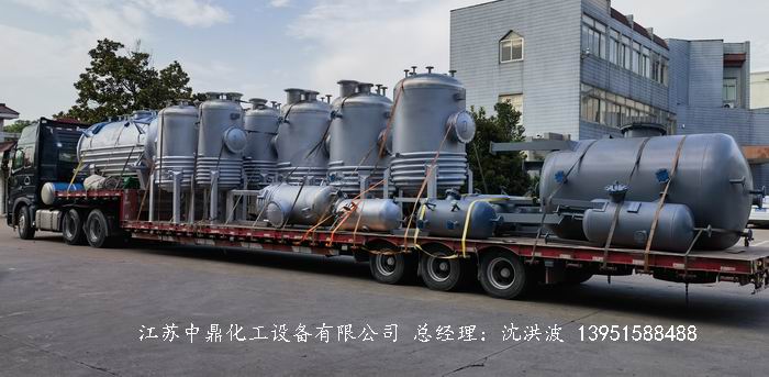 江蘇中鼎化工設備有限公司承接國內某大型企業的一批 不銹鋼立式真空接收罐(帶外盤半管保溫)的槽罐即將啟程