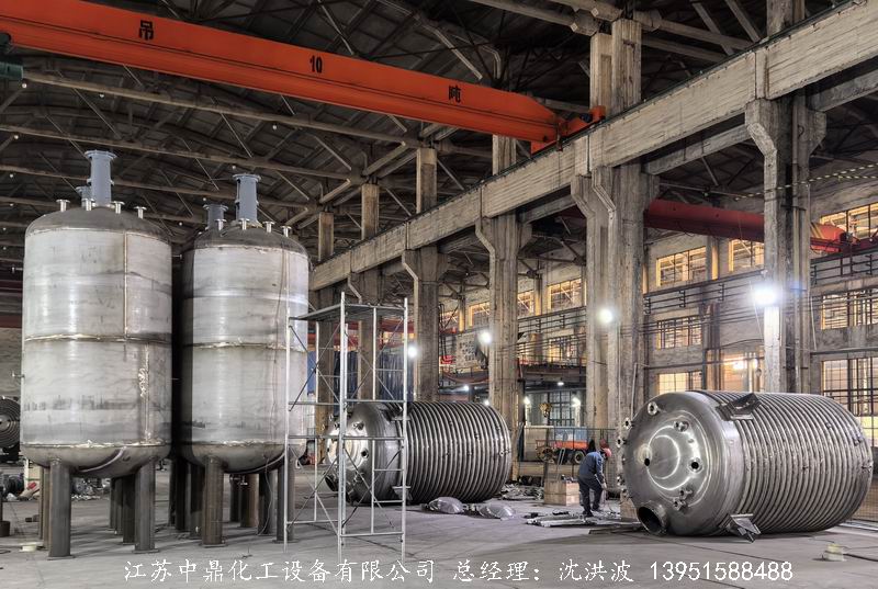 江蘇中鼎化工設(shè)備有限公司承接湖北某斯新材料有限公司的10臺(tái)15立方外盤(pán)半管式不銹鋼反應(yīng)釜制造過(guò)程。